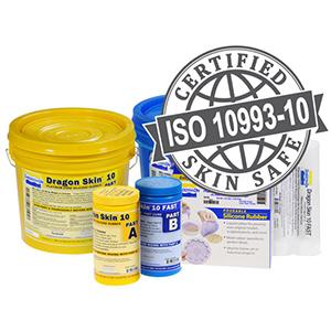 Dragon Skin® silicones are high performance platinum cure liquid silicone compounds that are used for a variety of applications ranging from creating skin effects and other movie special effects to making production molds for casting a variety of materials. Because of the superior physical properties and flexibility of Dragon Skin® rubbers, they are also used for medical prosthetics and cushioning applications. Dragon Skin® rubbers are also used for a variety of industrial applications and have a service temperature range of a constant -65°F to +450°F (-53°C to +232°C) Features Time Tested, Versatile Special Effects Material – Soft, super-strong and stretchy, Dragon Skin® 10 is used around the world to make spectacular skin and creature effects. An infinite number of color effects can be achieved by adding Silc Pig® silicone pigments or Cast Magic® effects powders. Cured rubber can also be painted with the Psycho Paint® system. Cured material is skin safe and certified by an independent laboratory to ISO 10993-10, Biological evaluation of medical devices, Part 10: Tests for irritation and skin sensitization. Easy To Use – Dragon Skin® silicones are mixed 1A:1B by weight or volume. Liquid rubber can be thinned with Silicone Thinner® or thickened with THI-VEX®. Rubber cures at room temperature (73°F/23°C) with negligible shrinkage. Vacuum degassing is recommended to minimize air bubbles in cured rubber.