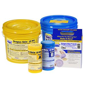Dragon Skin™ 10 NV is a low viscosity, high performance platinum cure silicone rubber that is easy to use and versatile. Mix ratio is 1A:1B by weight or volume, pot life is 15 minutes and cure time is 75 minutes at room temperature. Rubber cures with negligible shrinkage to a Shore 10A. Vacuum degassing is not necessary Color is water white translucent. Features Dragon Skin™ 10 NV is suitable for making molds of any configuration for casting plasters, wax, low-melt temperature metal alloys, resins and other platinum silicones (release agent required). Dragon Skin™ 10 NV is compatible with other Dragon Skin™ rubbers and is also suitable for special effects applications. Color can be added with Silc Pig™ or Ignite™ color pigments. This rubber can be thickened with Thi-Vex™ thickening agent or softened with SLACKER™ additive.