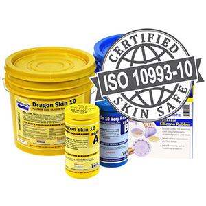 Dragon Skin® silicones are high performance platinum cure liquid silicone compounds that are used for a variety of applications ranging from creating skin effects and other movie special effects to making production molds for casting a variety of materials. Because of the superior physical properties and flexibility of Dragon Skin® rubbers, they are also used for medical prosthetics and cushioning applications. Dragon Skin® rubbers are also used for a variety of industrial applications and have a service temperature range of a constant -65°F to +450°F (-53°C to +232°C)