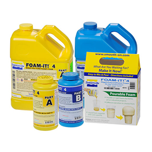 Smooth-On’s FOAM-iT!™ Series are two-component water blown rigid foams that are versatile and easy to use. FOAM-iT!™ products are available in 3lb., 4 lb., 5 lb., 8 lb., 10 lb.,15 lb. or 26 lb. per cubic foot densities. Parts A and B are measured and mixed in equal amounts by volume. The mixture is then poured into a mold or other form (apply release agent if necessary). The mixture will expand many times original volume (depending on which FOAM-iT!™ product you are using) and develop a uniform cell structure. FOAM-IT!™ 4 is tack-free in about 4 - 6.5 minutes, developing handling strength in 20 minutes and full cure in 2 hours. All FOAM-iT!™ products can be used as a straight casting material, backfill material for hollow castings (adds structural strength) or as an encapsulation material, etc. They can be color pigmented with SO-Strong™, UVO™ or IGNITE™ colorants and are used for a variety of art/ craft, industrial design and special effects applications.