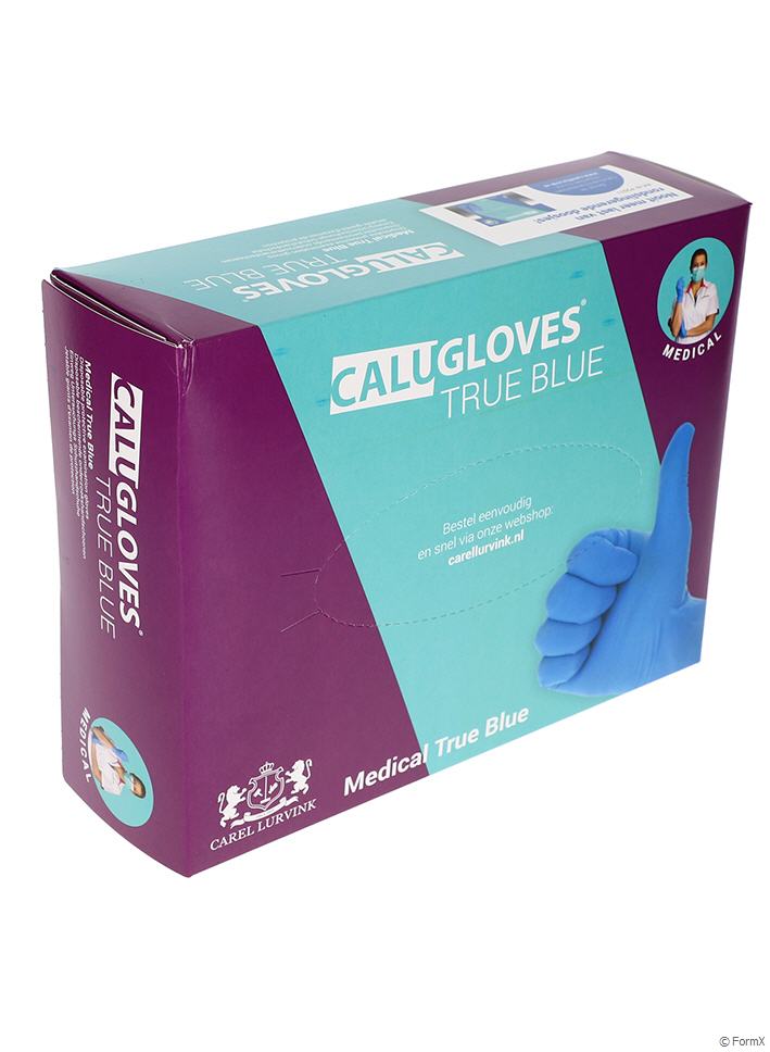 The CaluGloves Medical True Blue nitrile disposable gloves are made of top quality nitrile. The Medical True Blue nitrile is, despite its smaller thickness (3.2 mil.), strong and particularly comfortable due to its high dexterity.