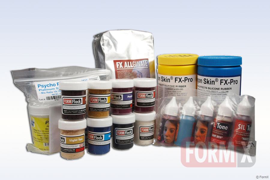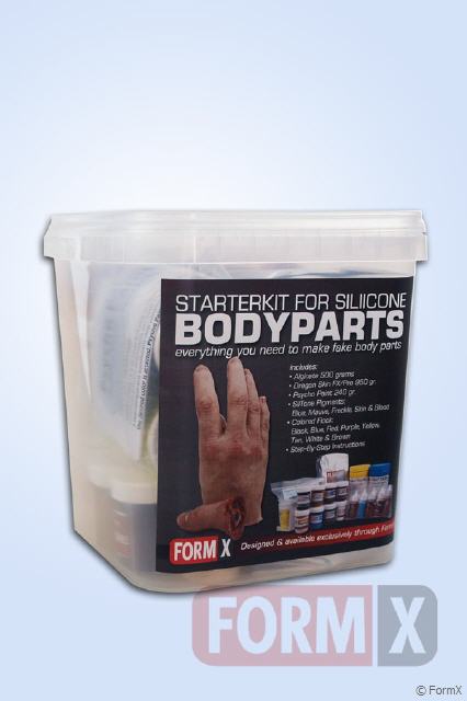 All you need to make silicone body parts. This kit contents: 500 gr. Alginate, Dragon Skin FX/Pro Silicone 940 gr. , Psycho Paint silicone paint base 240 gr, 8 pots of colored flocking, full siltone kit with 7 colours to pigment and paint your silicone creations. The kit comes with an extensive how-to tutorial