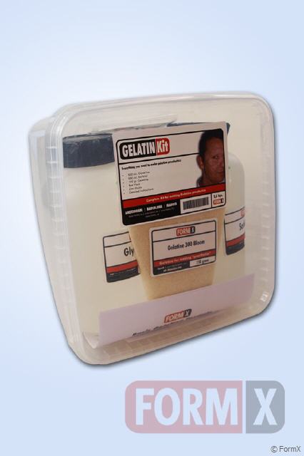 All You need to make 1 kg. of prosthetic Gelatin. Kit contents: 500 ml Glycerine, 500 ml. Sorbitol, 150 gr. Gelatine, Red Flock, Zinc Oxide, detailed instructions.