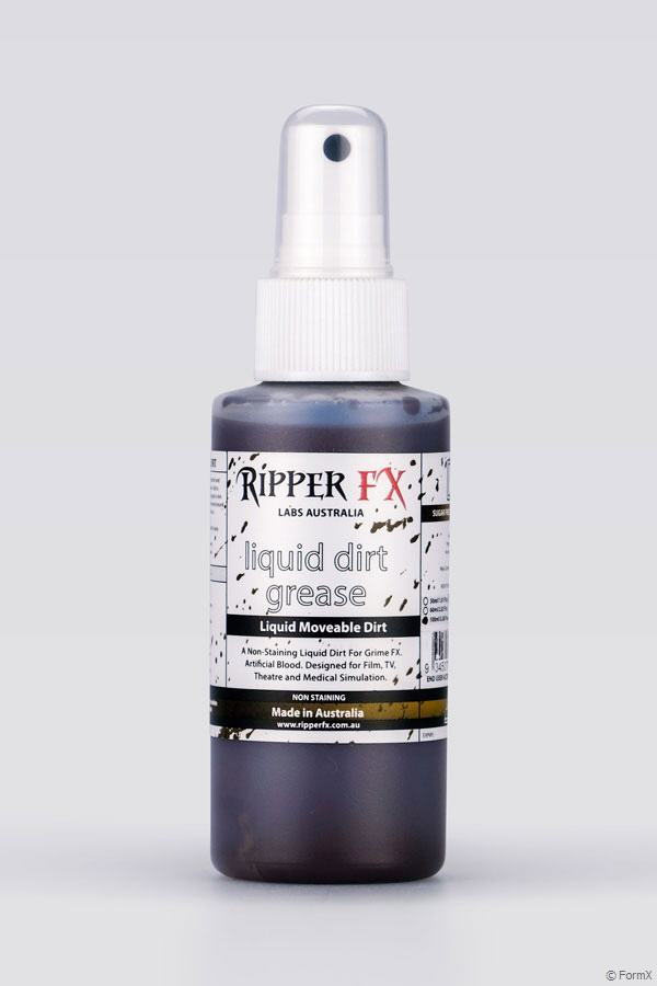 A liquid mud for creating in ground dirt and grime effects on skin and costume.